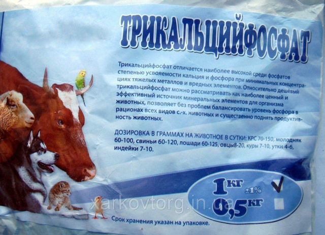 Трикальцийфосфат кормовой способствует усвоению кормов, повышает привесы, снижает заболеваемость животных, безвреден для животных даже после длительного хранения.
