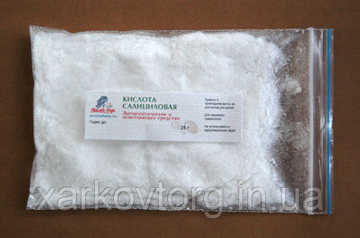 Салициловая кислота обладает слабыми антисептическими, раздражающими и кератолитическими (в больших концентрациях) свойствами и применяется в медицине наружно в мазях и растворах при лечении кожных заболеваний; входит в состав пасты Лассара, присыпки «гальманин», препаратов «мозольная жидкость» и «мозольный пластырь». В аптечной сети продаётся в таких лекарственных формах, как спиртовой раствор для наружного применения (с содержанием салициловой кислоты 1 или 2 %) и мазь (2, 3, 5 и 10-процентная).